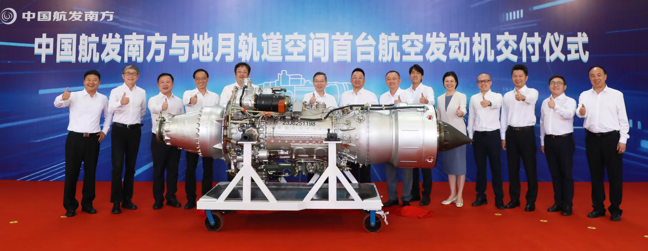 On April 25th, Jiao Qisen, the president of China Jing An; Xu Ke, the deputy general manager of China Jing An as well as the president of Earth-Moon Space; and other senior executives were invited to participate in the delivery ceremony of the first turboprop aircraft engine by AECC South Industry Co., Ltd. (referred to as AECC SI) in Zhuzhou, Hunan. This significant moment was witnessed by Chen Huiqing, the mayor of Zhuzhou; Yang Xianfeng, the president of AECC SI; Shi Guoyue, the vice president of East China Normal University; delegations from MTU Maintenance Zhuhai; and other representatives. This delivery marks a breakthrough in the powerplant system for unmanned aerial vehicles developed by Earth-Moon Space, which inaugurates a new chapter in the enormous development of China’s general aviation industry and low-altitude economy hardware equipment.